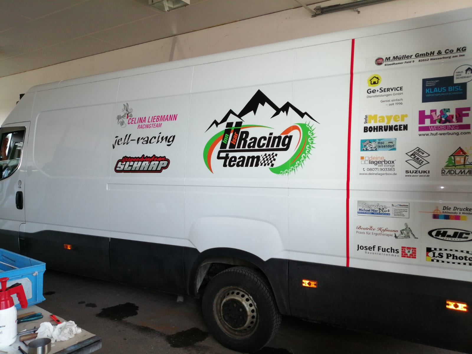 Aktuelle Fotos von der neuen Teambus- und Motorrad- Beklebung!